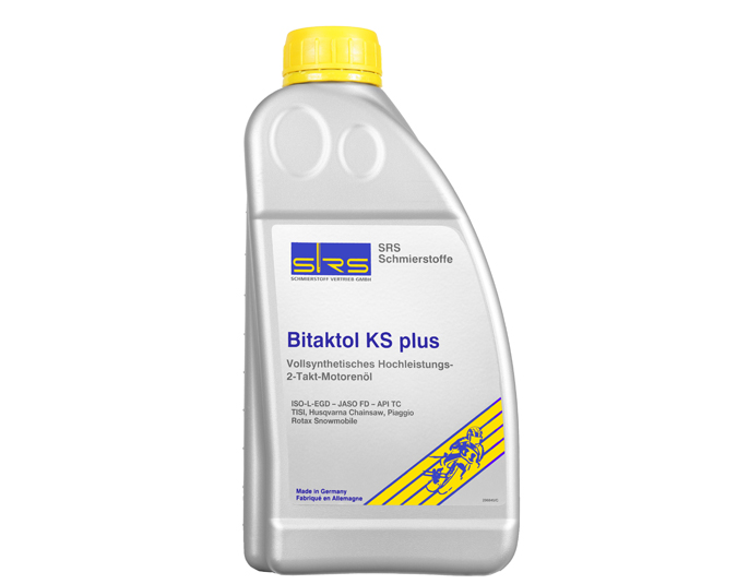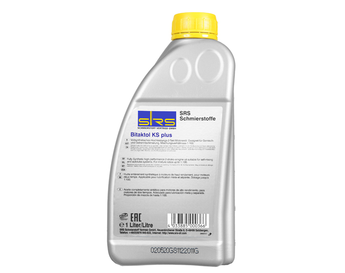 SRS Bitaktol KS plus是一種全合成高性能自混合二沖程原裝進口機油。 能高效清潔,防腐,環(huán)粘,防止活塞卡死。目前是FD最高級別的園林機械用油